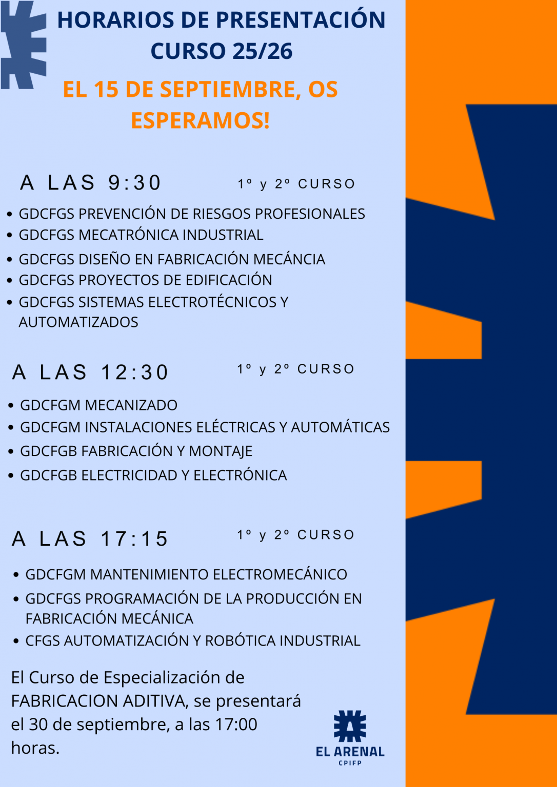 Si estás matriculado en nuestro centro aquí puedes consultar los horarios de presentación de tu grupo. Espera en la entrada del centro, llamarán a los…