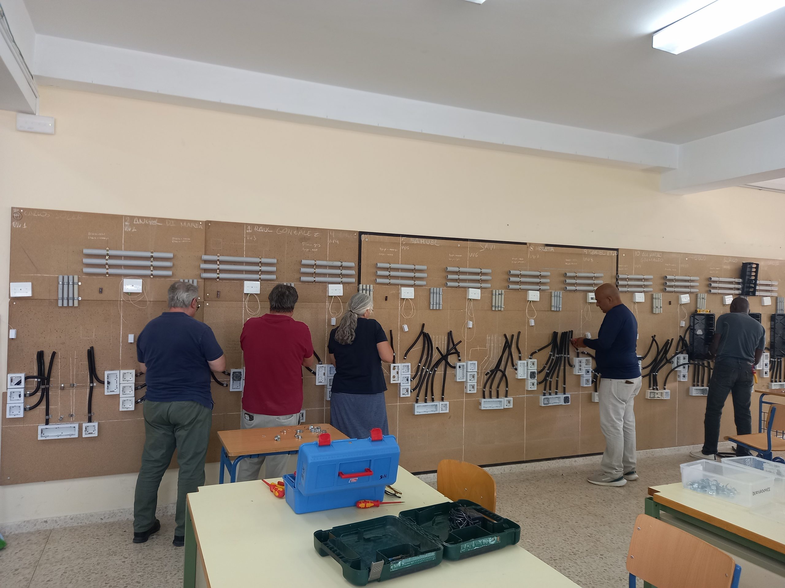 Llegó a su fin el certificado profesional ELES0208 “OPERACIONES AUXILIARES DE MONTAJE DE INSTALACIONES ELECTROTÉNICAS Y DE TELECOMUNICACIONES EN EDIFICIOS”. En esta ocasión han titulado 7 alumnos de los 15 que comenzaron en mayo, estos alumnos han podido realizar prácticas de telecomunicaciones en edificios, aprendiendo el montaje y reparación de porteros electrónicos y el montaje y reparación de instalaciones eléctricas básicas.
